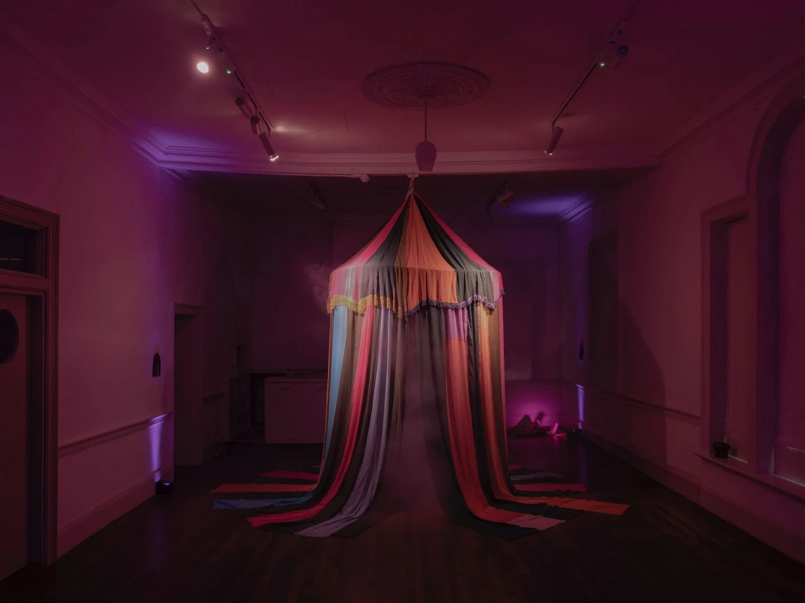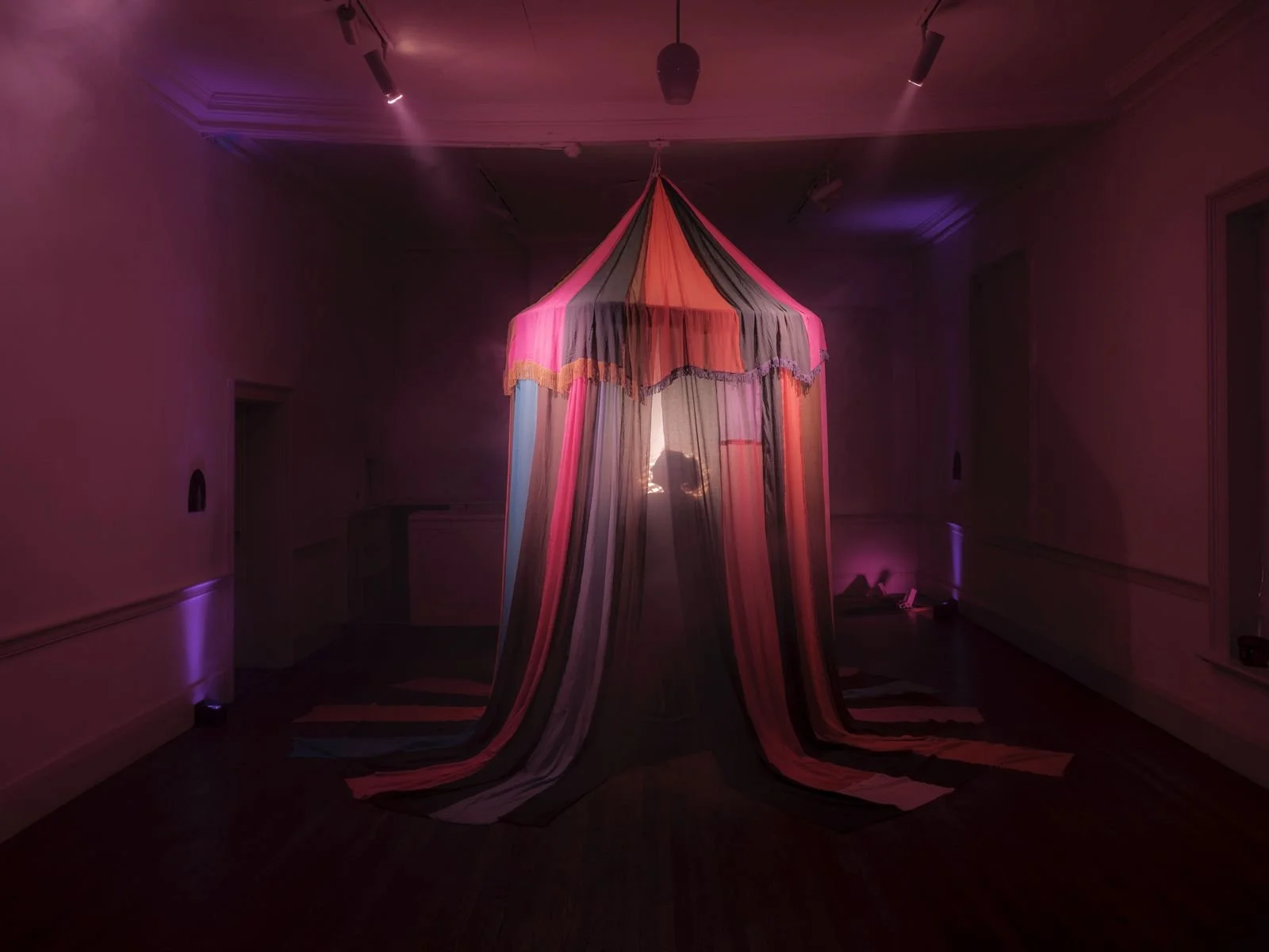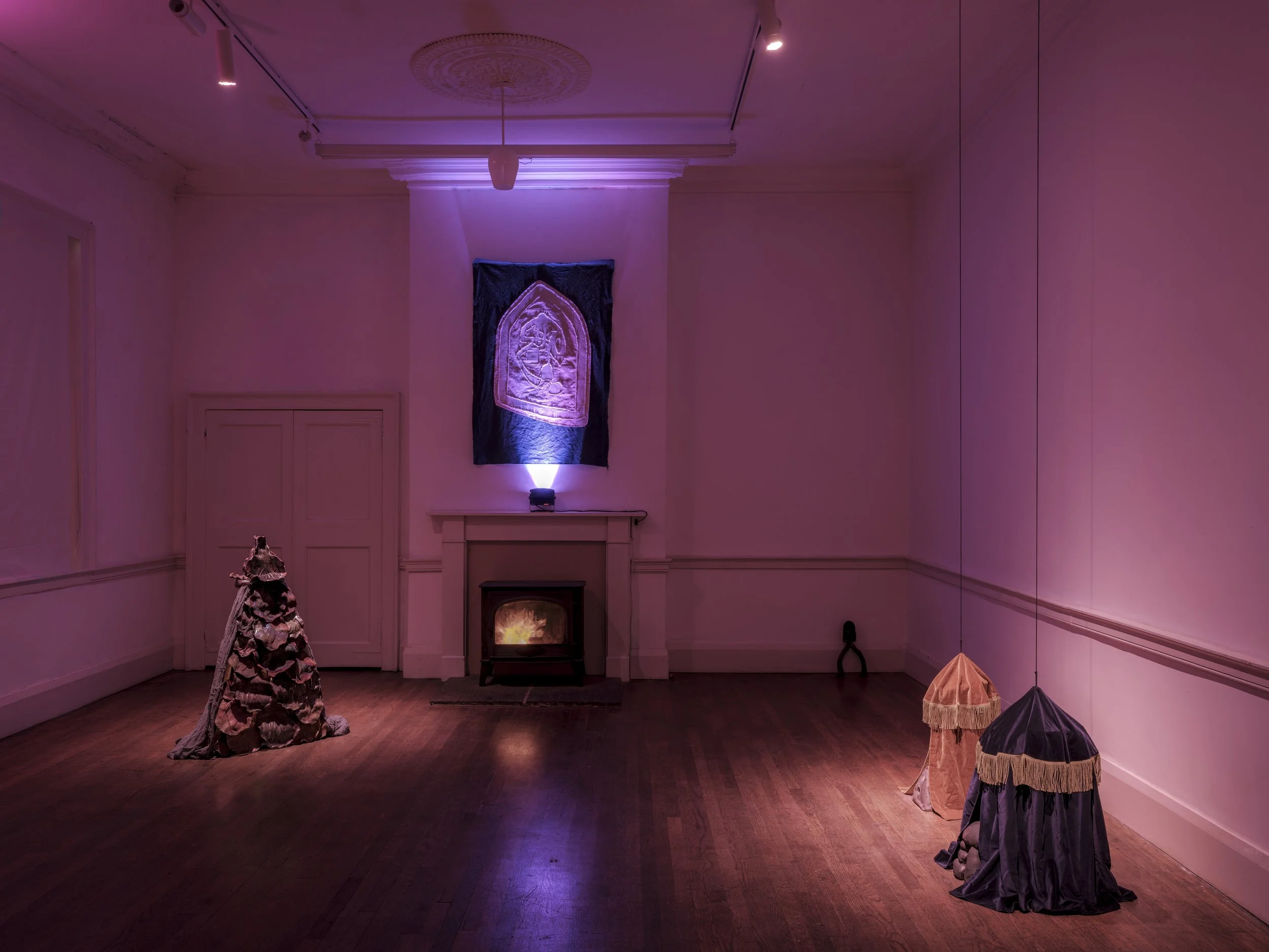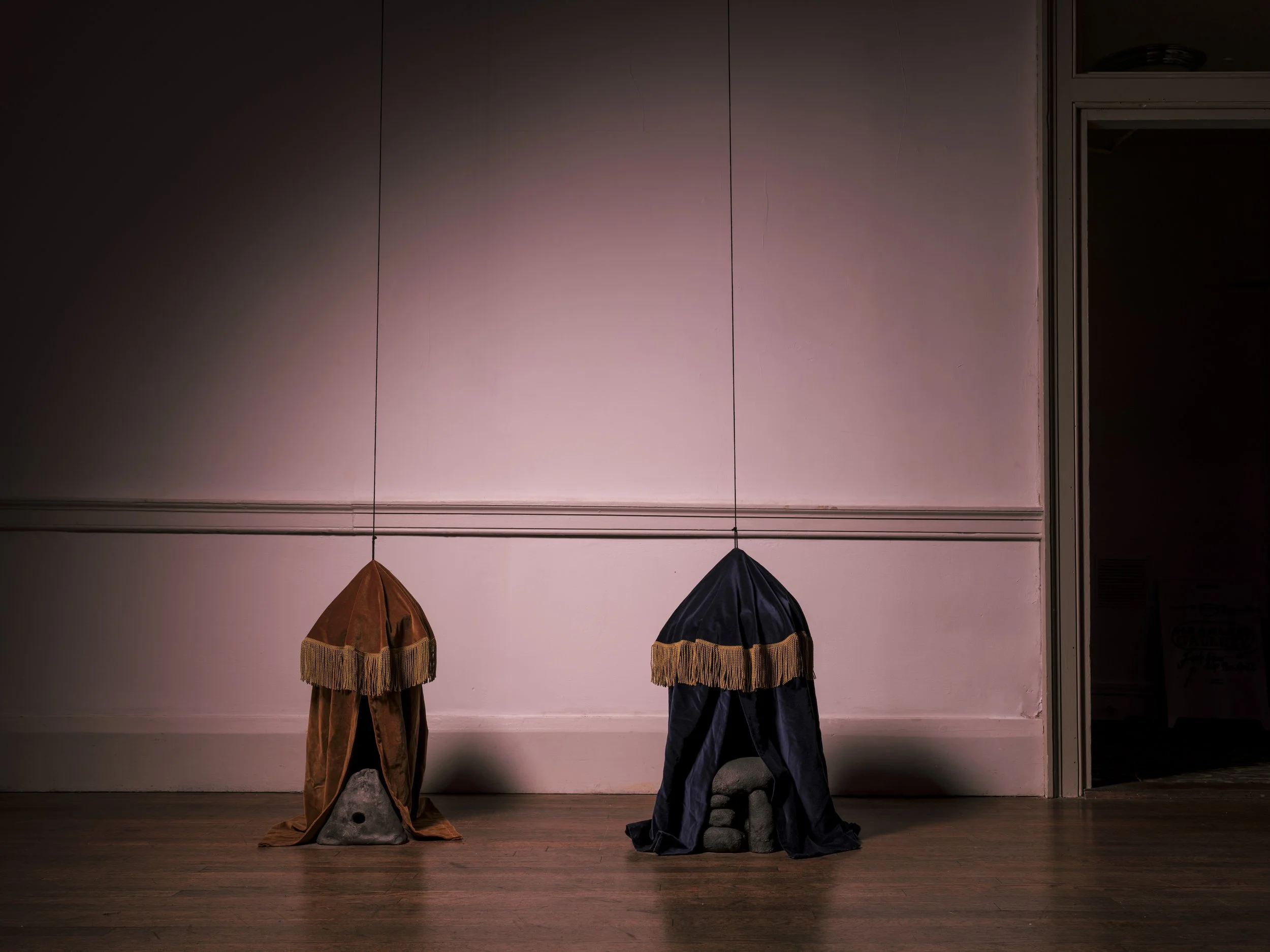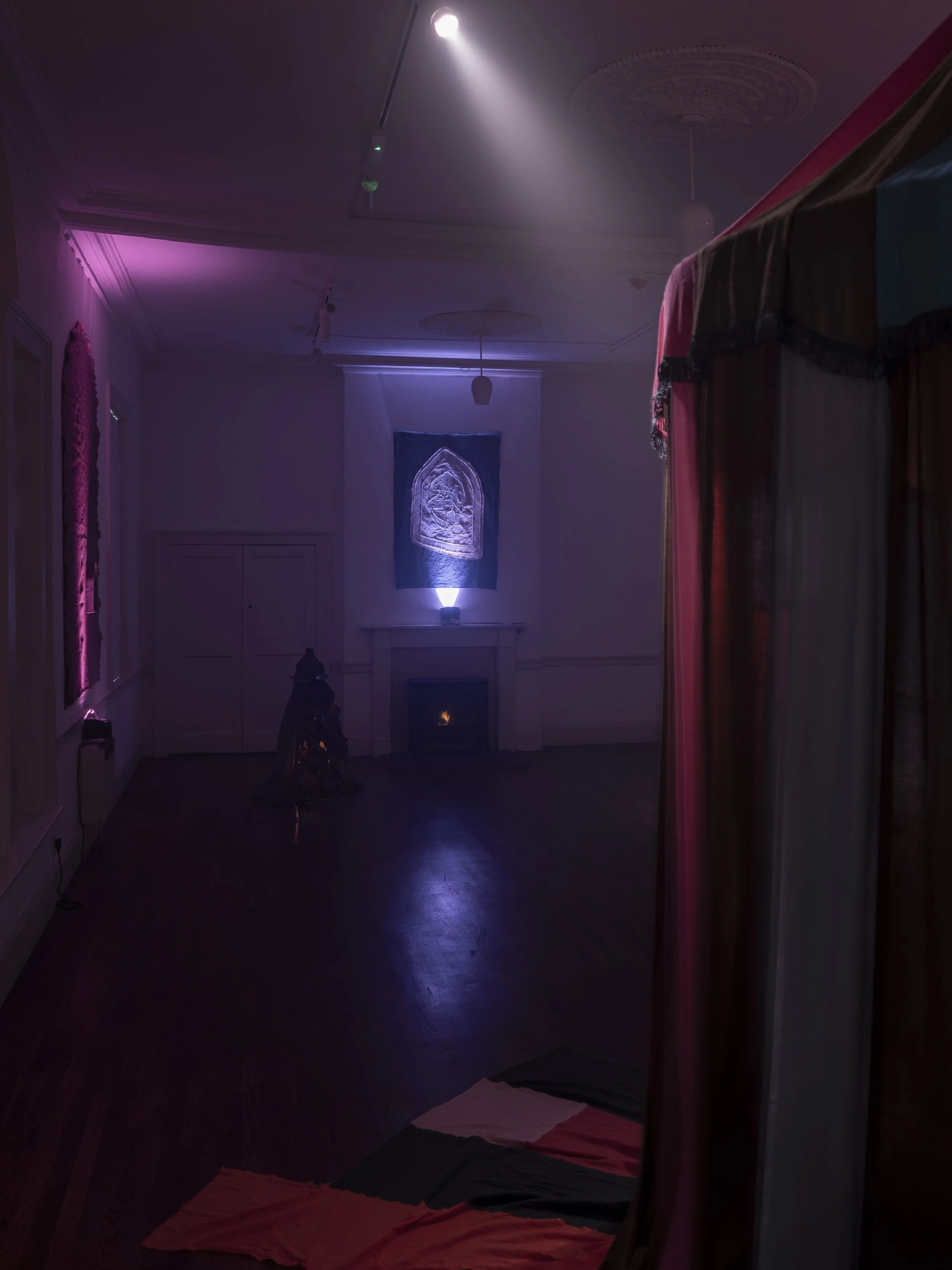 Healing Chamber presents a vision of one such imagined space, recreated as an installation through fabric, sculpture and sound. The work functions as a contemplative environment, at once architectural and intimate, that invites reflection on the transformative aspects of grief and healing.