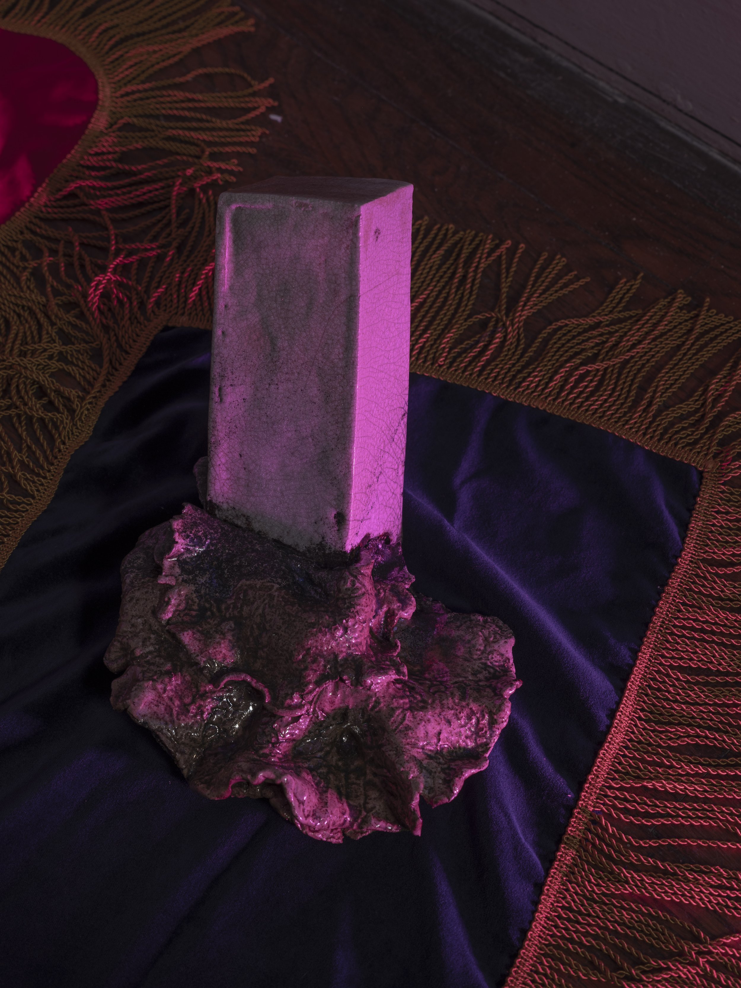 Healing Chamber marks a development in Annabel Pettigrew’s practice, emerging from an intense period of personal loss. This experience has shaped an ongoing inquiry into grief as both subject and process, prompting the artist to consider how loss can alter perceptions of self, time and material reality.